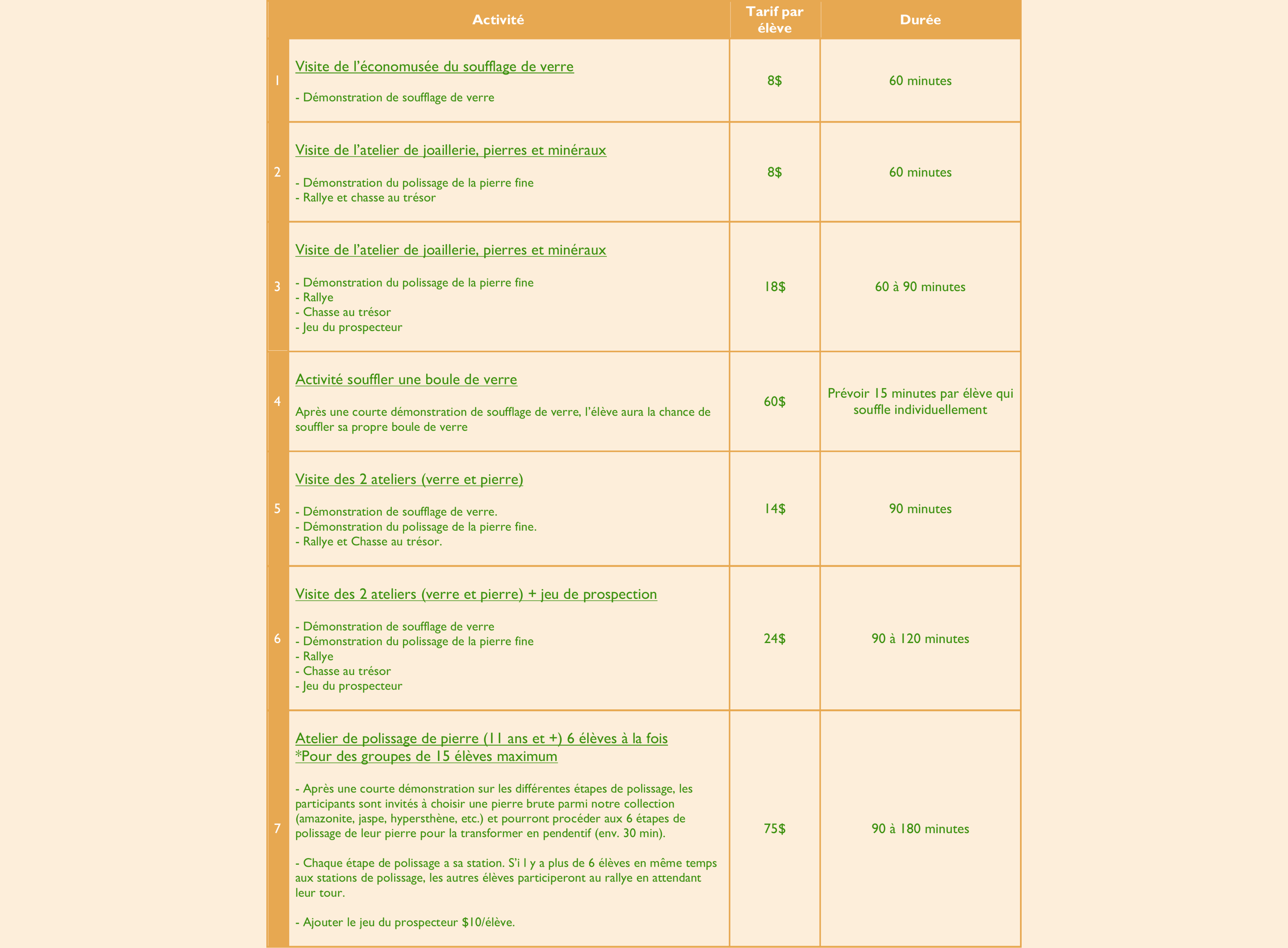 Incluant une démonstration de taille de pierre, nous avons l'exposition de minéraux et des activités pour les plus jeunes groupes comme: