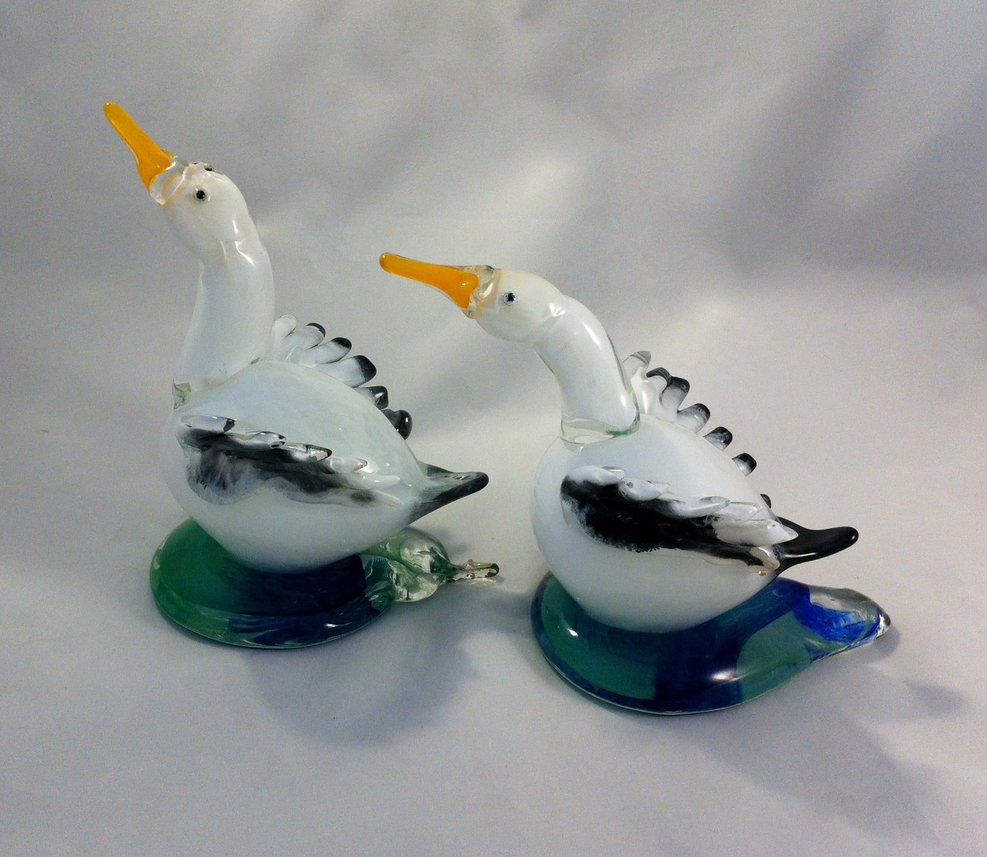 Sculptures d'oies de verre sur base.